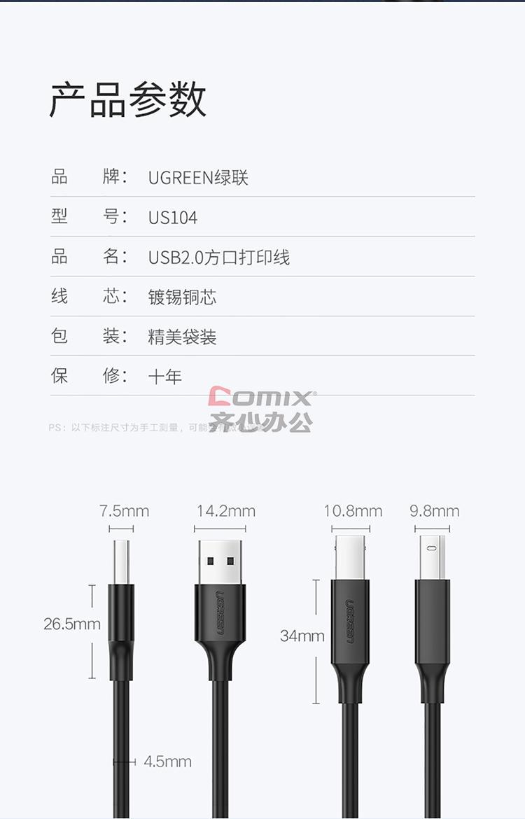 商品名称:绿联 10844 1米 USB2.0 A公对B公打印线(单位:条)黑色