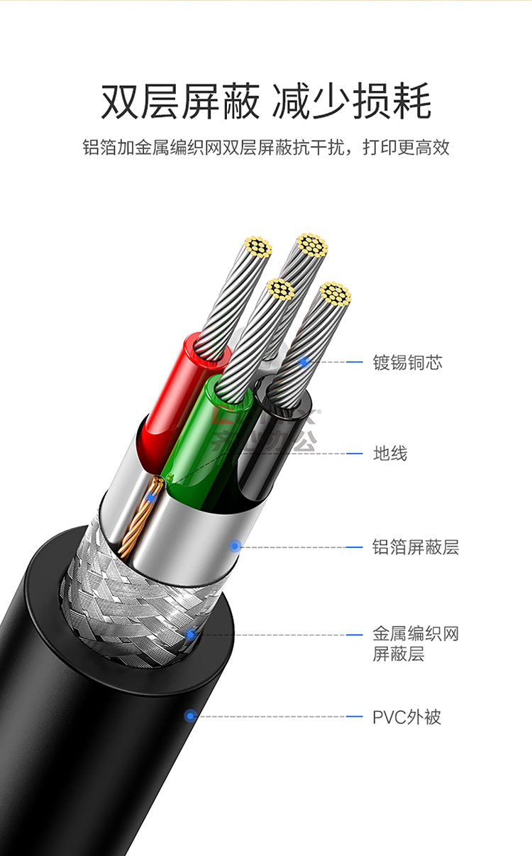 商品名称:绿联 10351 3米 USB2.0打印线 (单位:条)黑色
