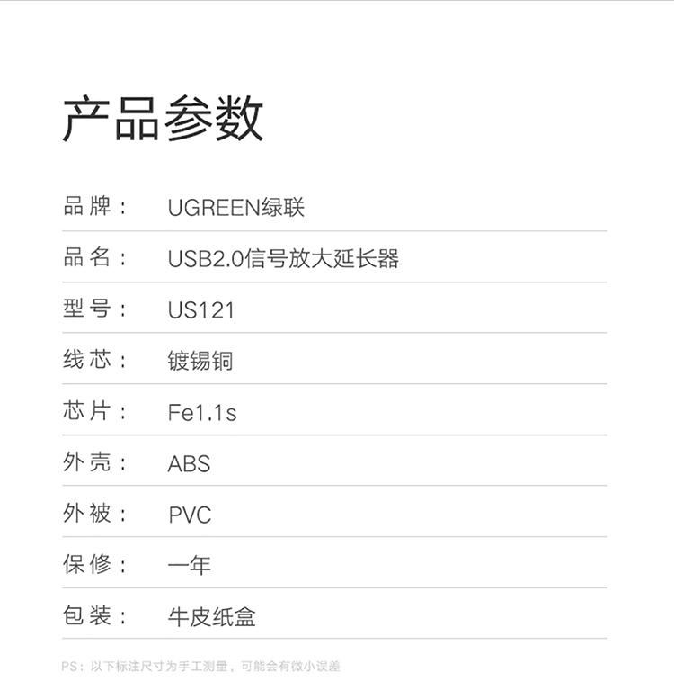 商品名称:绿联 10319 5米 USB2.0延长线 带放大延长器 (单位:盒) 黑色