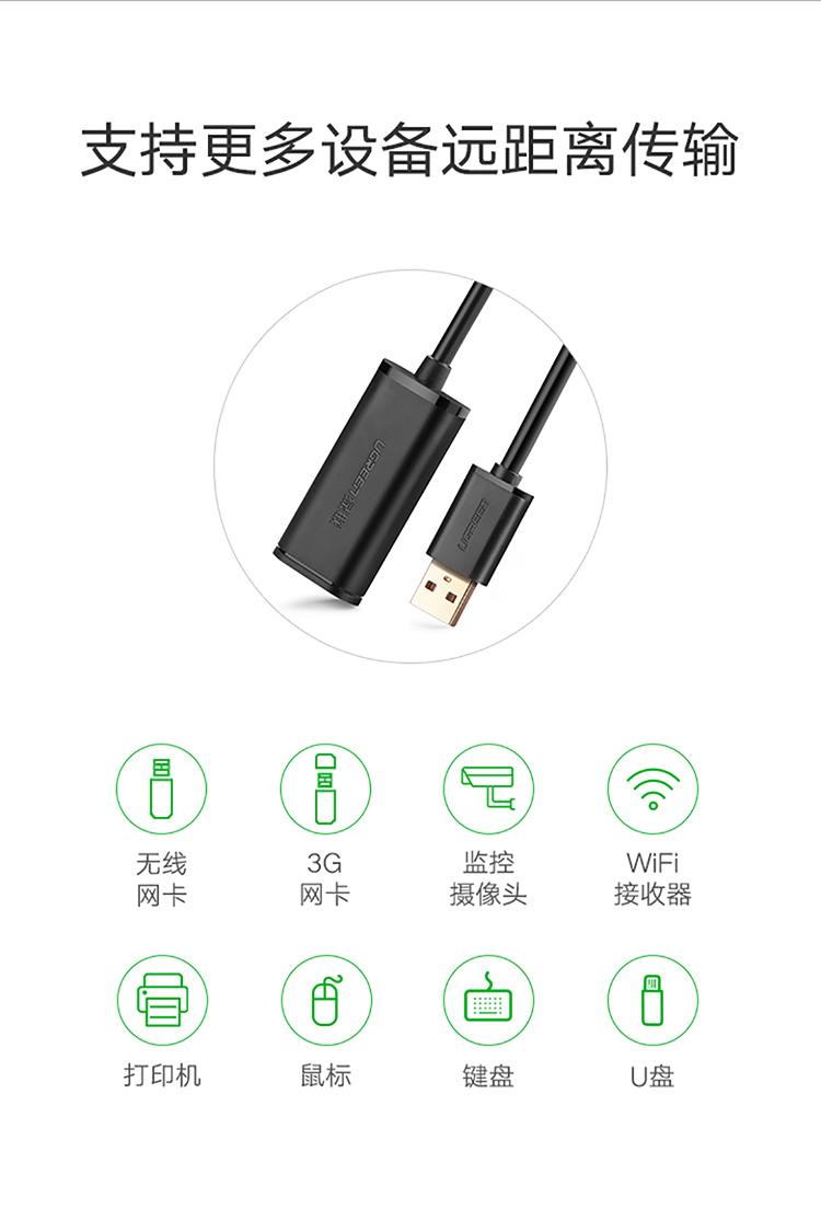 绿联 10319 5米 USB2.0延长线 带放大延长器 (单位:盒) 黑色