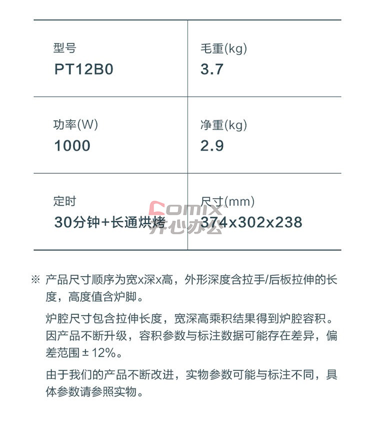 商品名称:美的 PT12B0 家用12L电烤箱 (单位:台) 淡雅绿