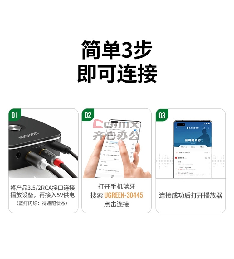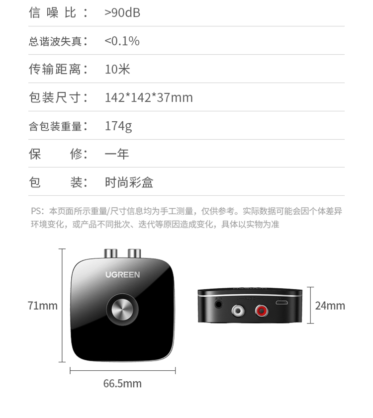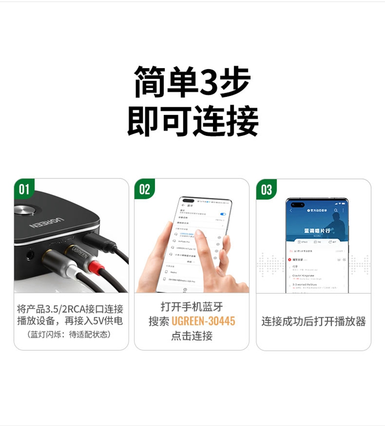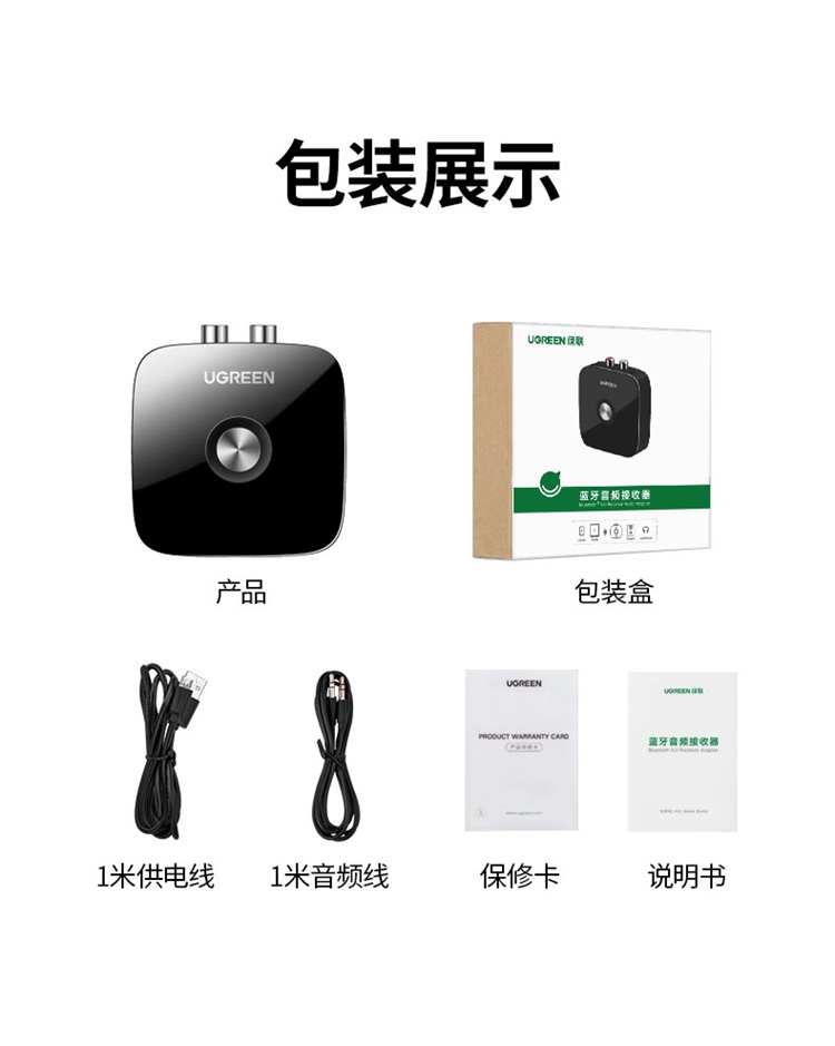 商品名称:绿联 30445 无线车载蓝牙适配器免驱5.0版 3.5mm+2RCA转手机(单位:个)