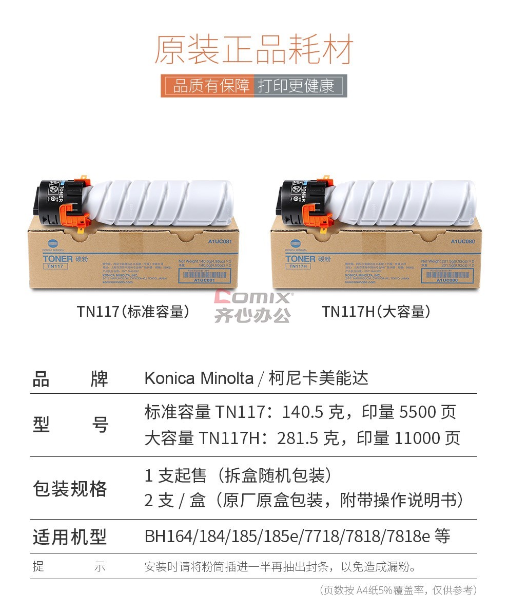 柯尼卡美能达 TN117 墨粉 标容 黑色 适用bizhub 185e/7818e机型 单位: 支