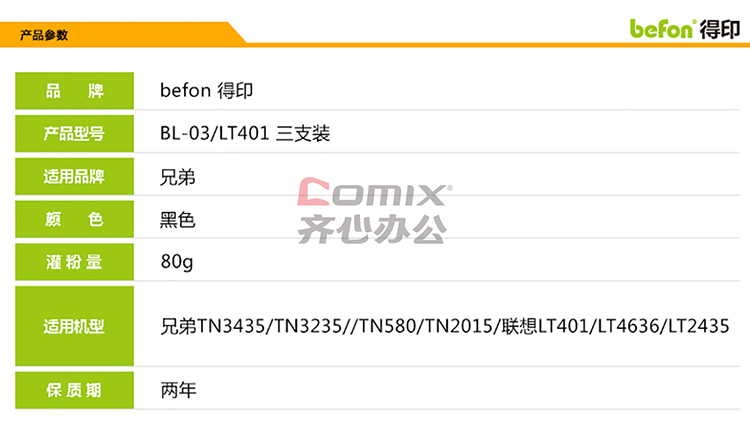商品名称:得印(befon) LT401 BL-03三支装 碳粉(计价单位:盒)黑色
