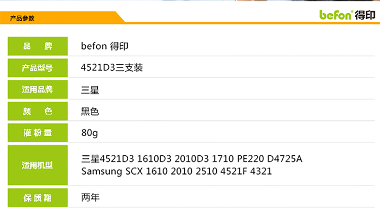 商品名称:得印(befon) 4521D3墨粉 碳粉 三支/套(计价单位:套)黑色
