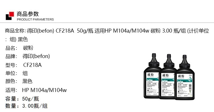 商品名称:得印(befon) CF218A墨粉 碳粉 三支/套(计价单位:套)黑色