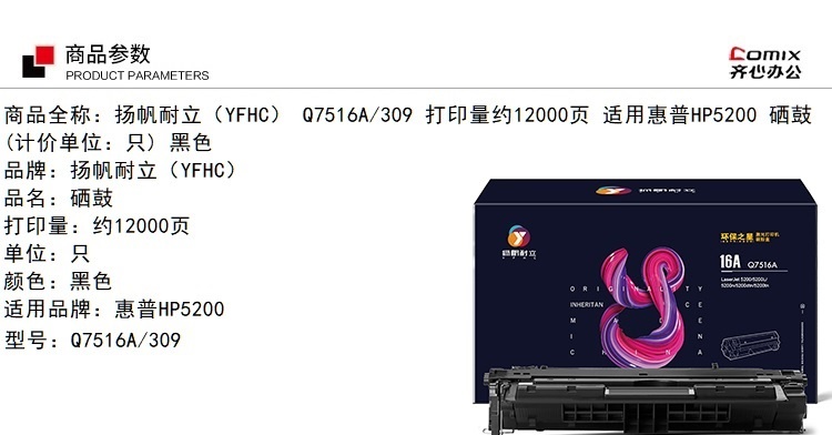 - 商品名称:扬帆耐立 Q7516A 环保之星系列 硒鼓 适用型号:惠普HP Laserjet5200 5200L 5200n 5200dtn 5200tn(单位:支)黑色