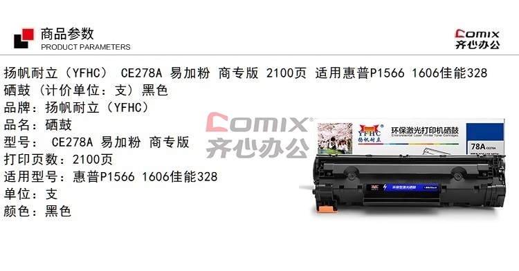 - 商品名称:扬帆耐立 CE278A易加粉 硒鼓 适用机型:惠普HP M1536dnf/P1566/P1606dn 黑色(单位:只)