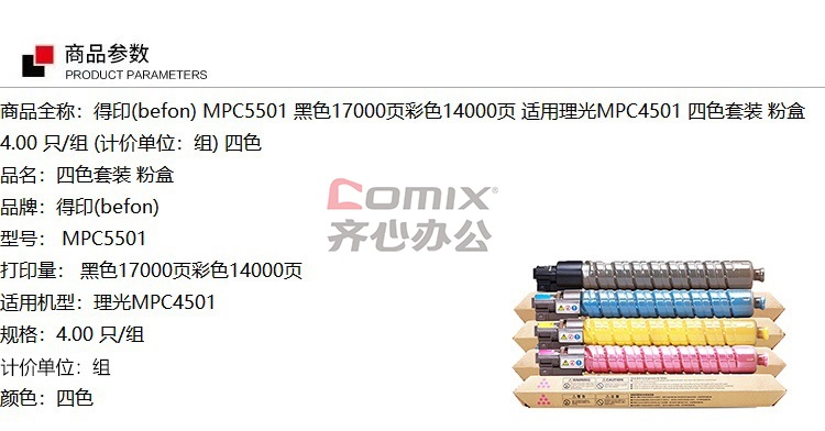 商品名称:得印(befon) MPC5501 四色套装 粉盒 碳粉(计价单位:套)四色