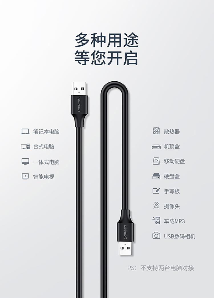 商品名称:绿联 10310 公对公 USB2.0数据线连接线 1.5M 黑色(单位:根)