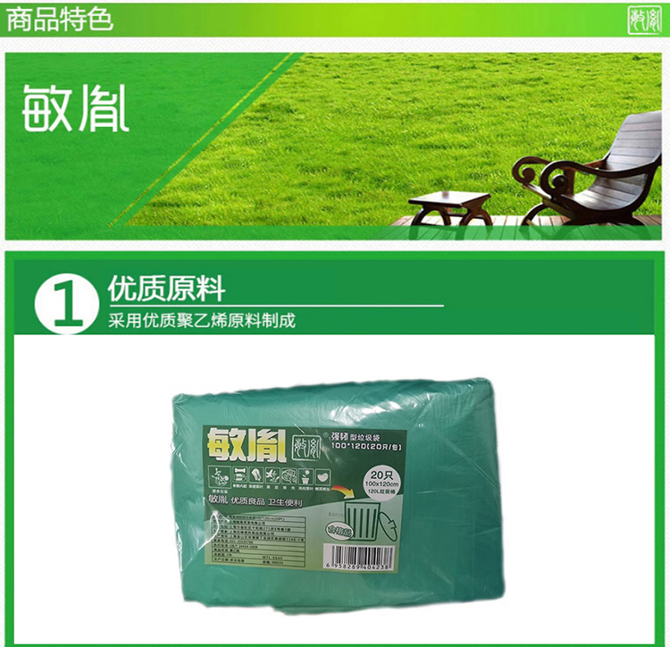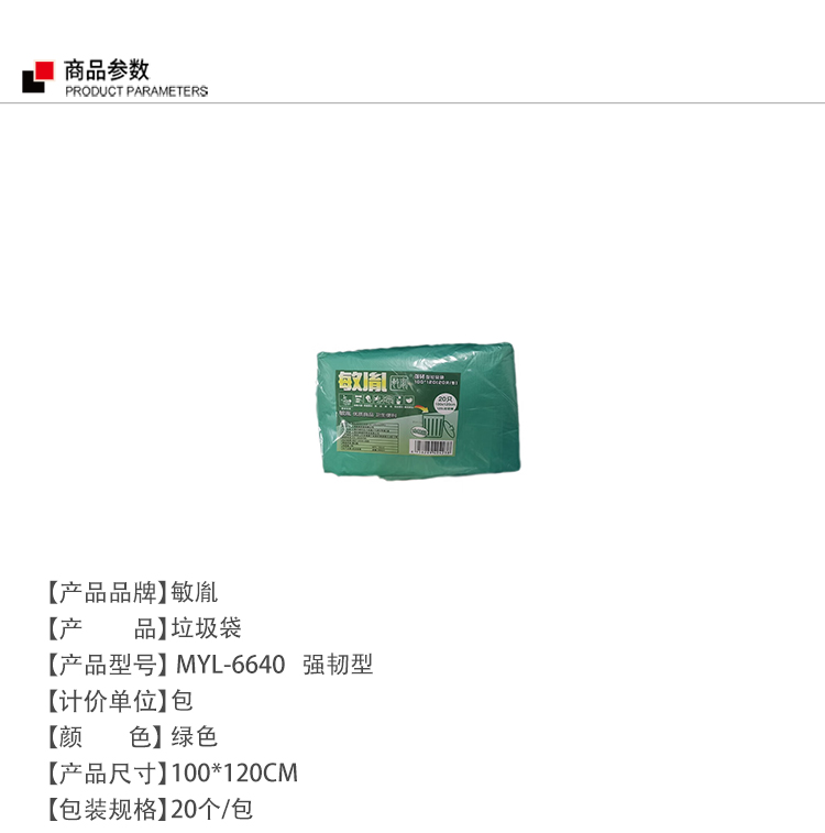商品名称:敏胤 MYL-6640 100*120 强韧型垃圾袋(20PC) (单位:个) 绿色