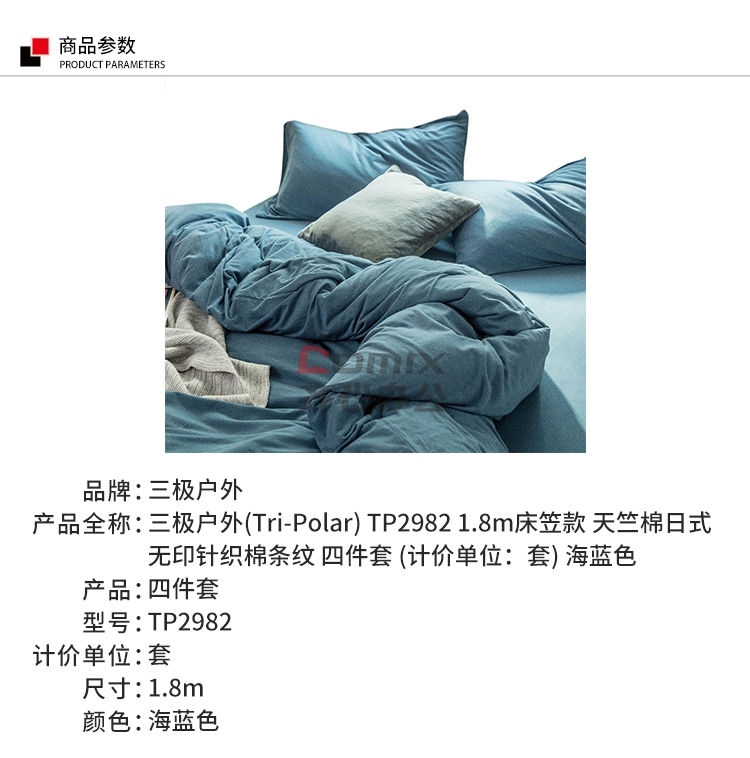 商品名称:三极户外 TP2982 1.8m床笠款 天竺棉日式纯色四件套 (单位:套) 海蓝色