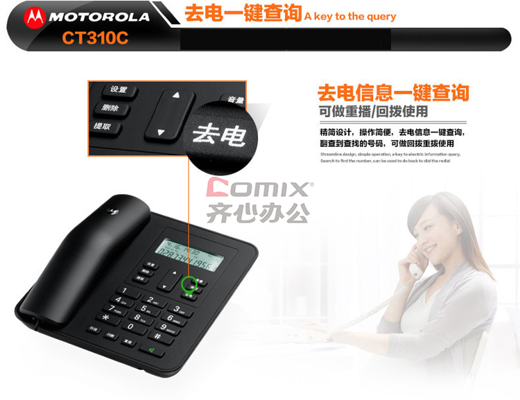 商品名称:摩托罗拉 CT310C 电话机 黑色 单位:台