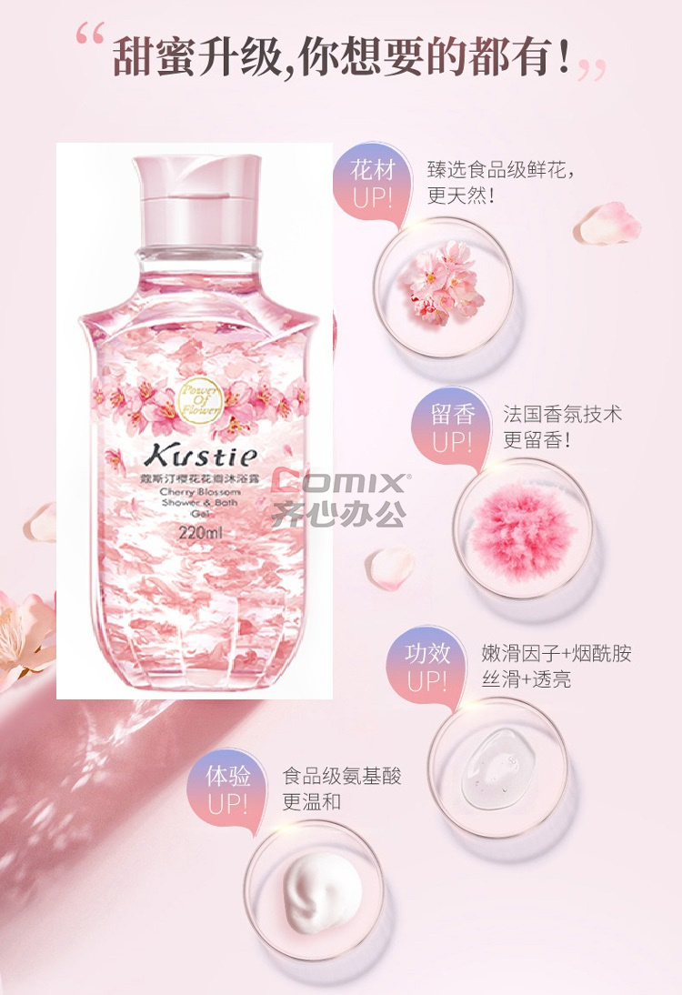 商品名称:蔻斯汀(Kustie) 樱花花瓣 220ml 沐浴露 (计价单位:瓶)