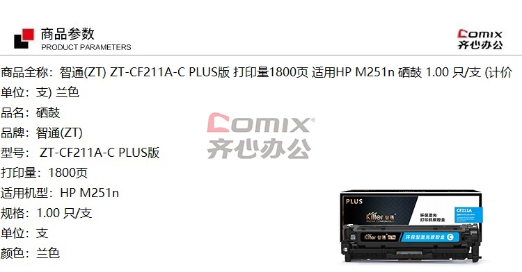 - 商品名称:智通 ZT-CF211A-C PLUS版 打印量1800页 适用HP M251n 硒鼓 兰色(单位:支)