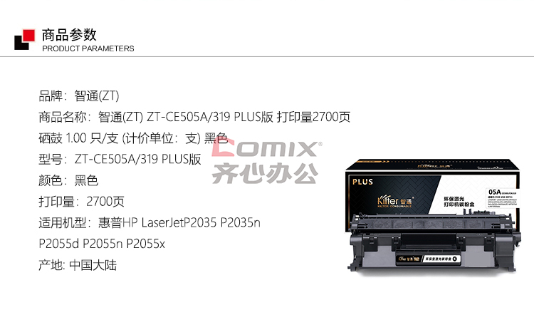 | 商品型号 | ZT-CE505A/319 PLUS版 打印量2300页 |