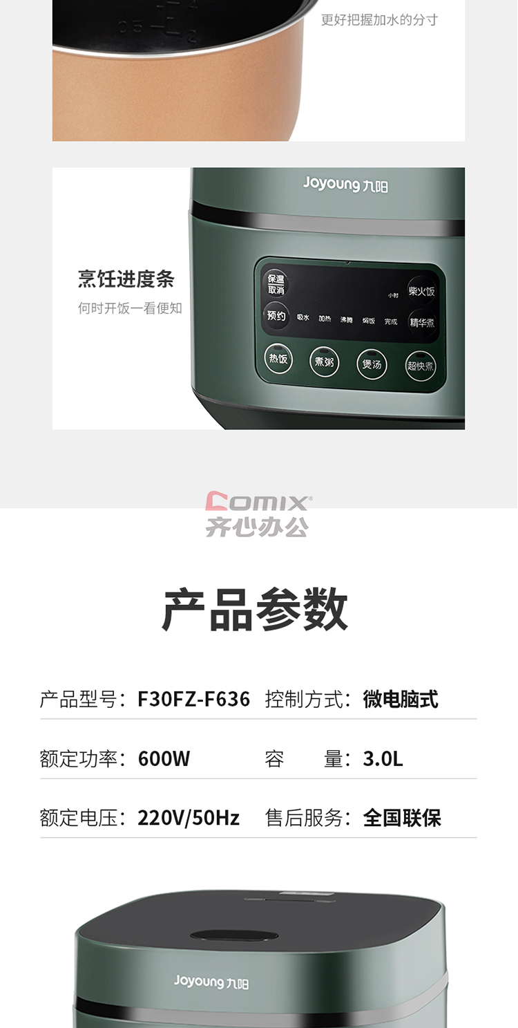 商品名称:九阳 F30FZ-F636 3.0L 智能电饭煲 绿色(单位:台)