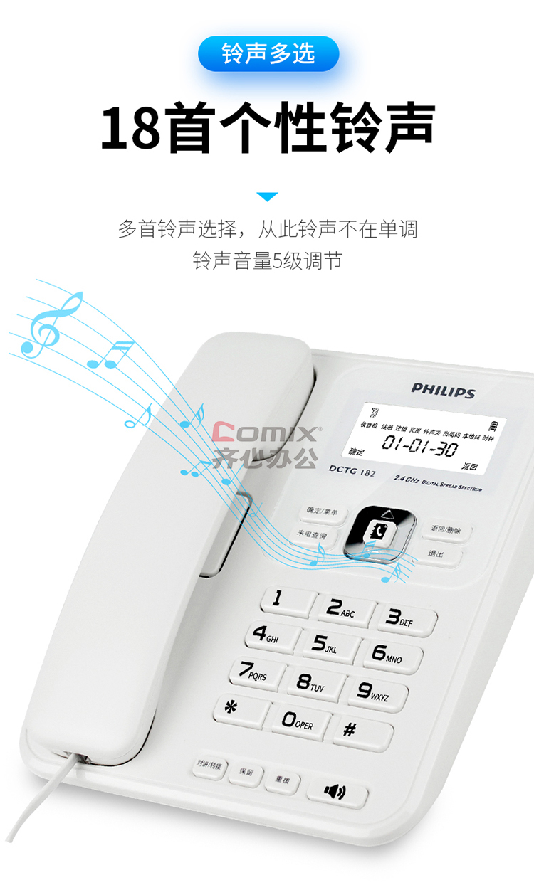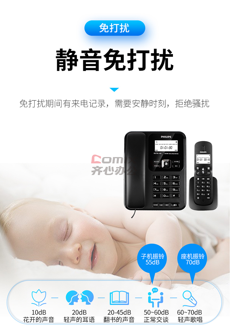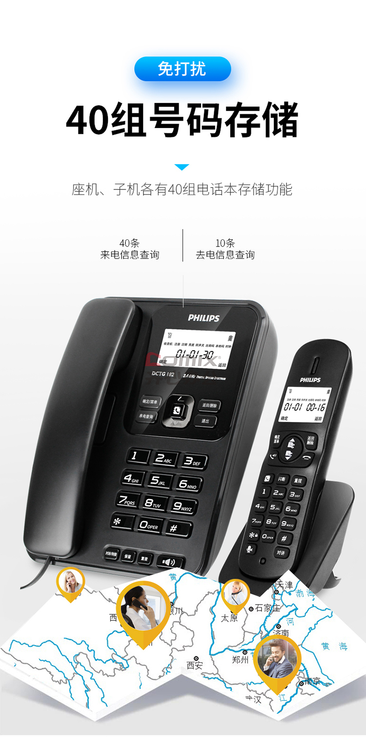 - 商品名称:飞利浦 DCTG182 无绳电话机 无线座机 子母机 办公家用 中文菜单 双免提 三方通话 一拖二 黑色 (单位:台)