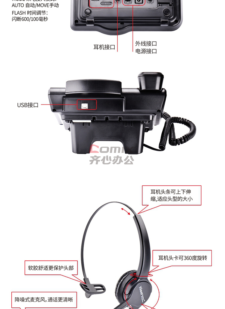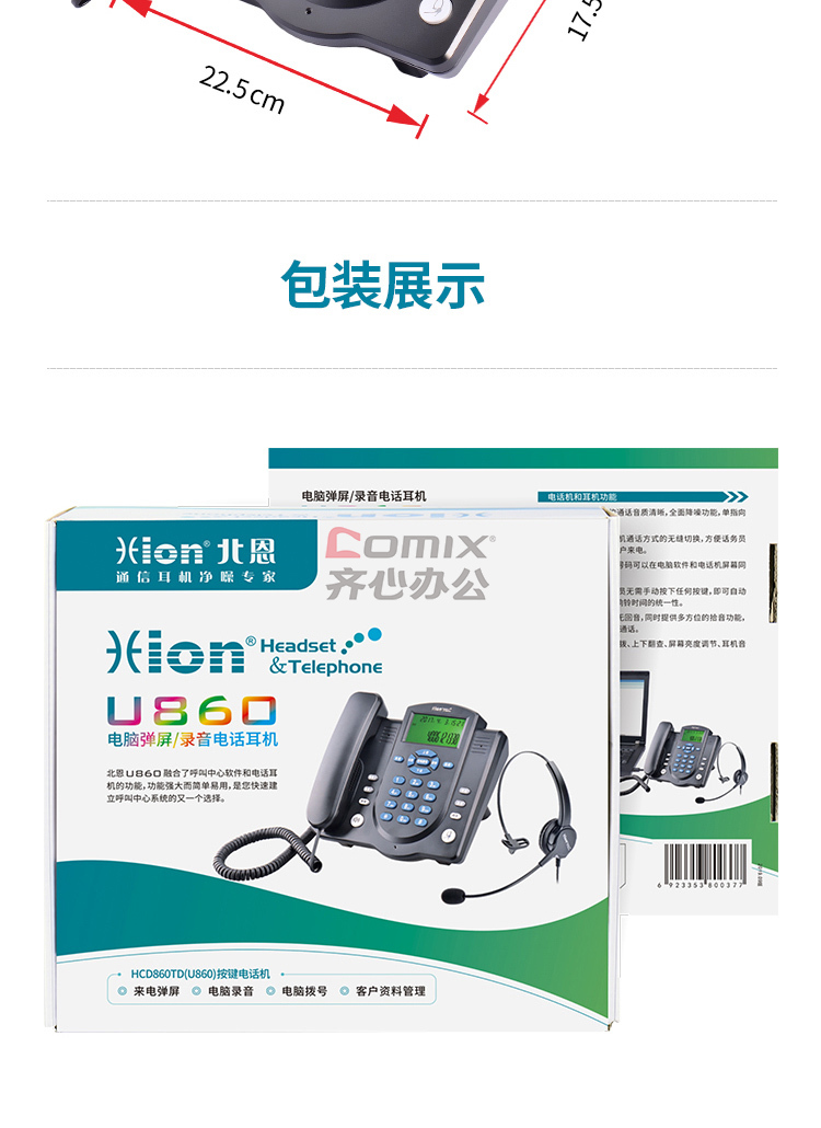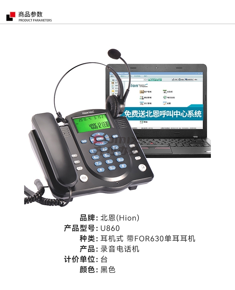 - 商品名称:北恩(HION) U860 耳机式 带FOR630单耳耳机 录音电话机 (单位:台)
