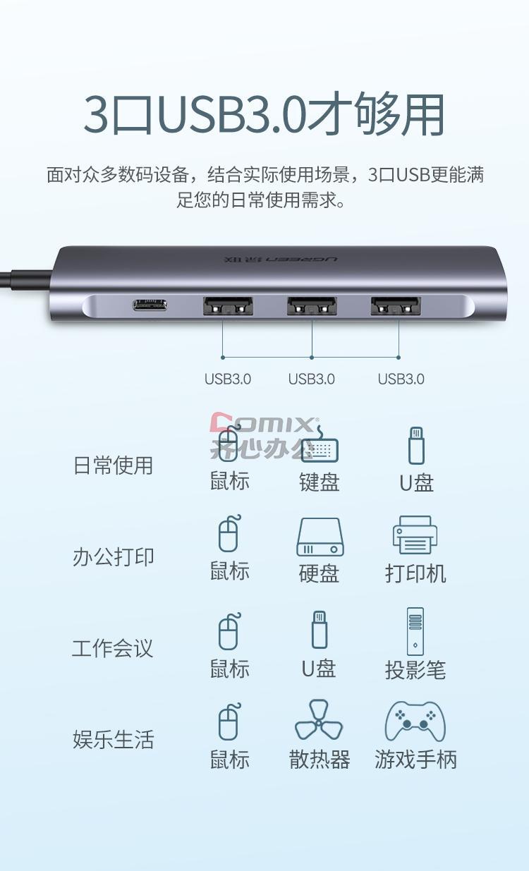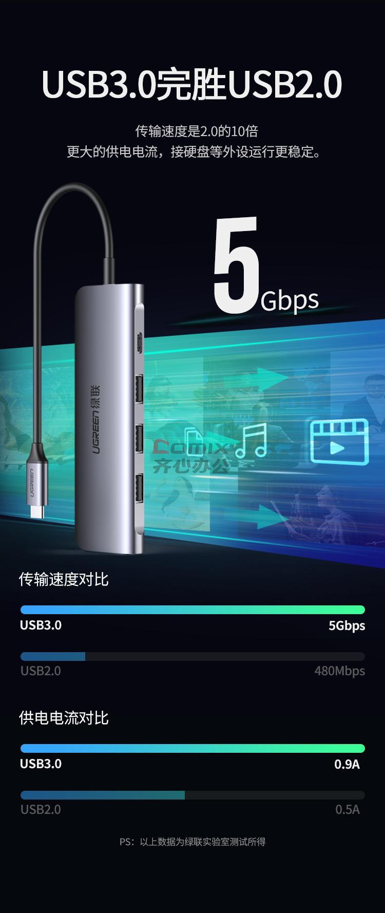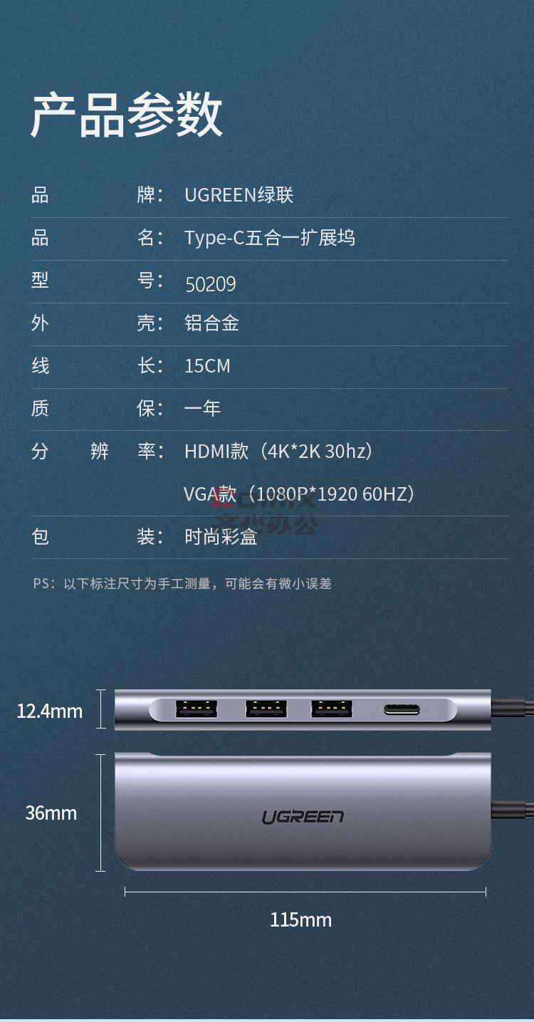 商品名称:绿联 50209 Type-C扩展坞 (计价单位:个) 黑色
