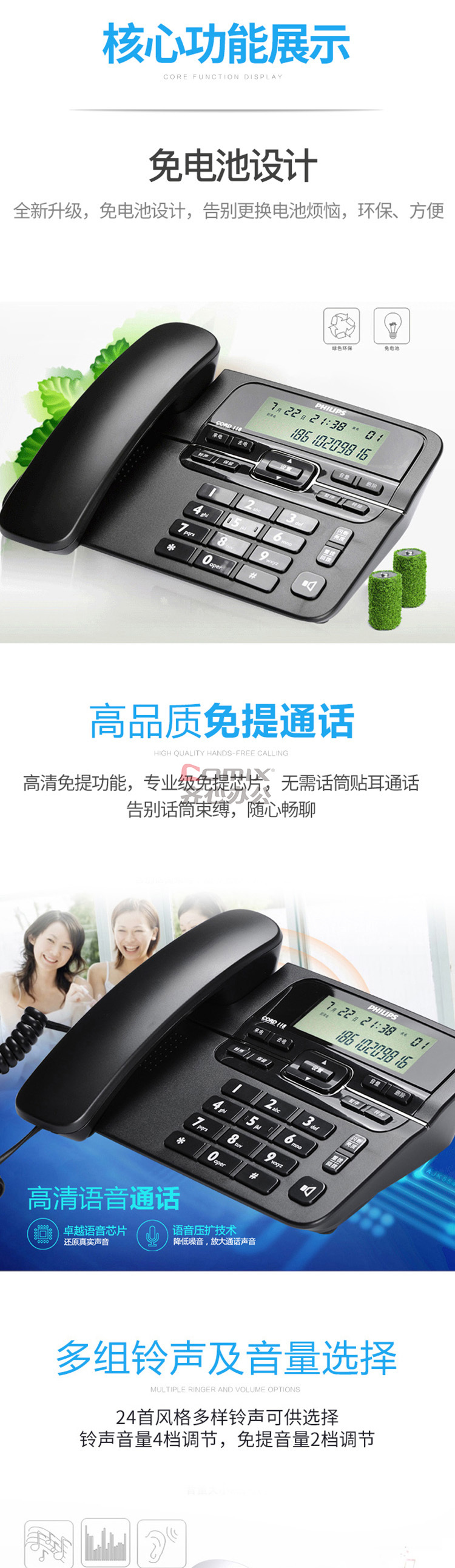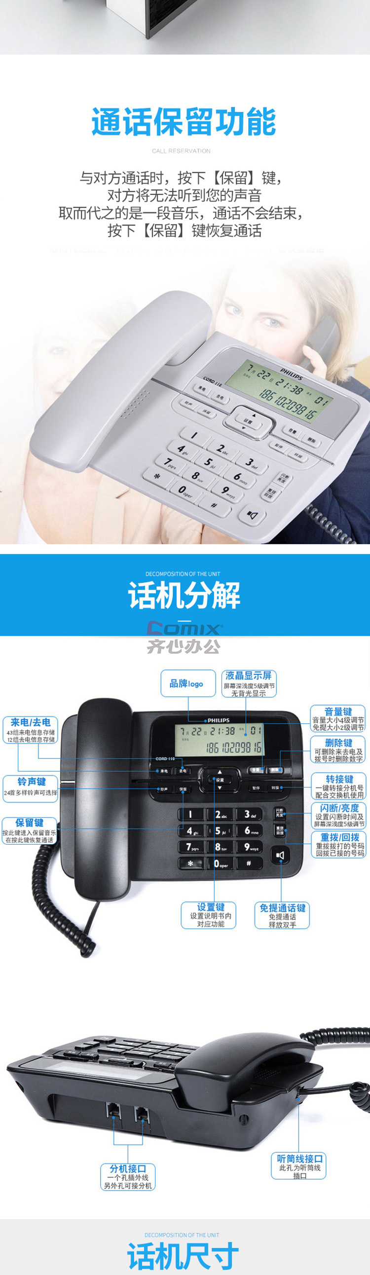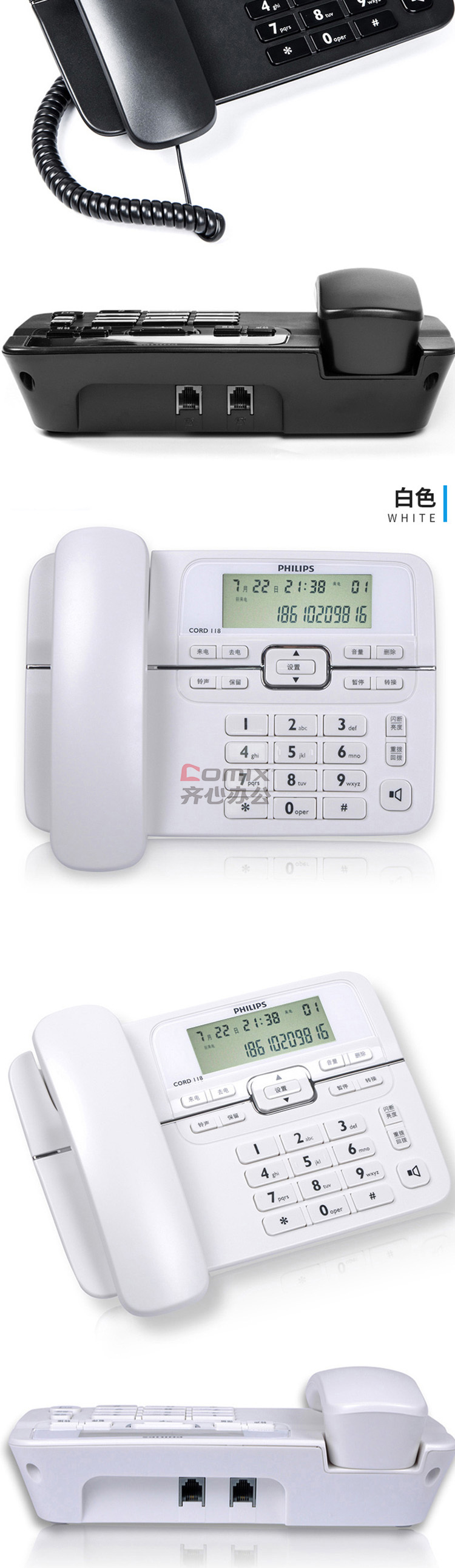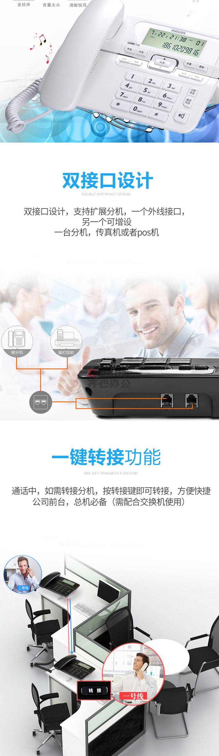 商品名称:飞利浦 CORD118 电话机座机 固定电话 办公家用 来电显示 双接口 免电池 灰色(单位:台)