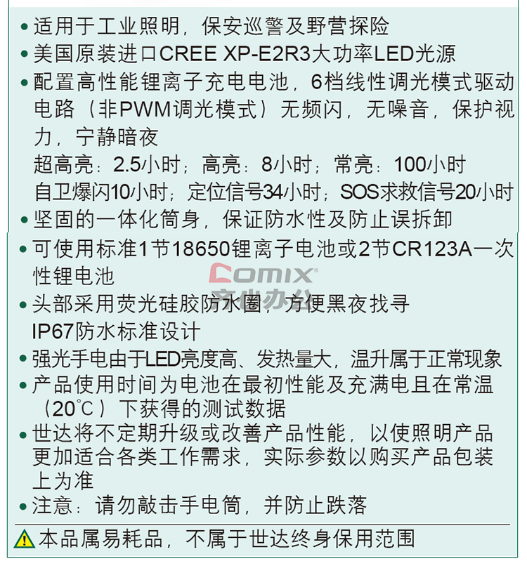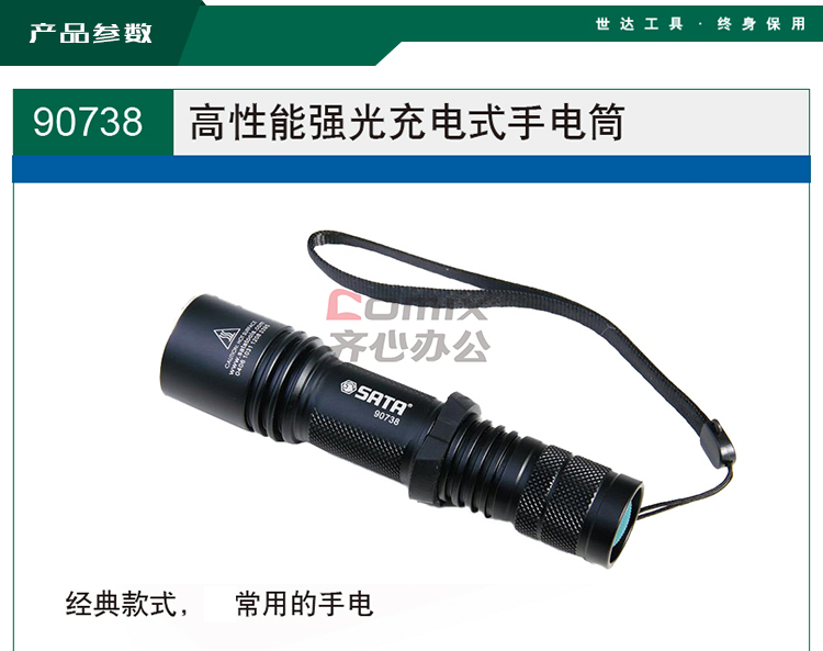 商品名称:SATA/世达 90738 高性能强光充电式LED手电筒 (单位:个)