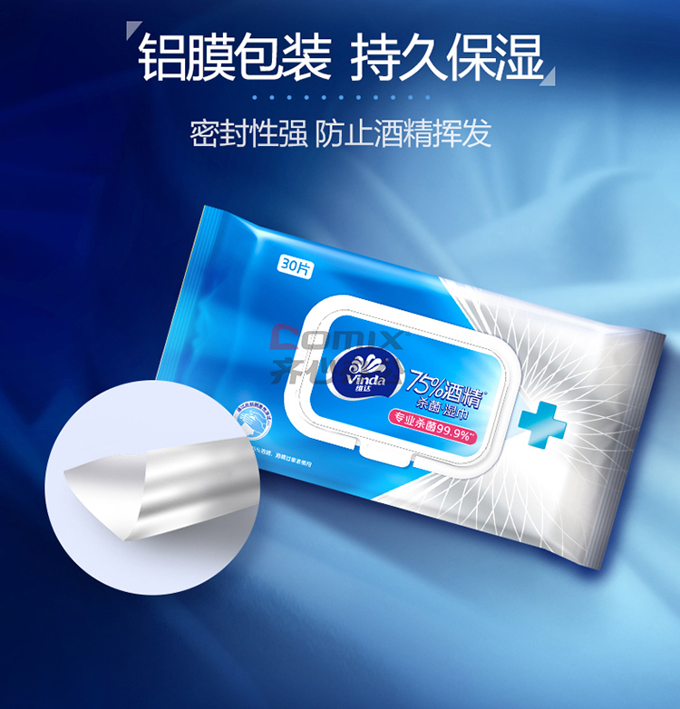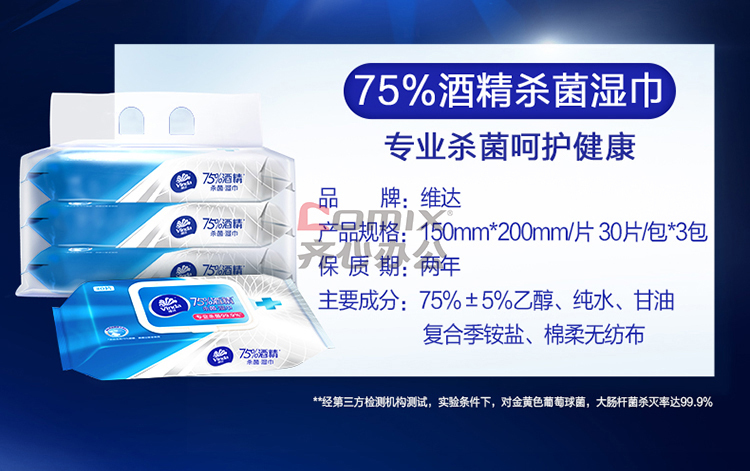 商品名称:维达 VW1030A 75%酒精杀菌卫生湿巾 30片*3包 单位:提