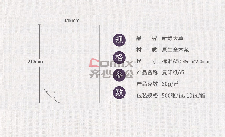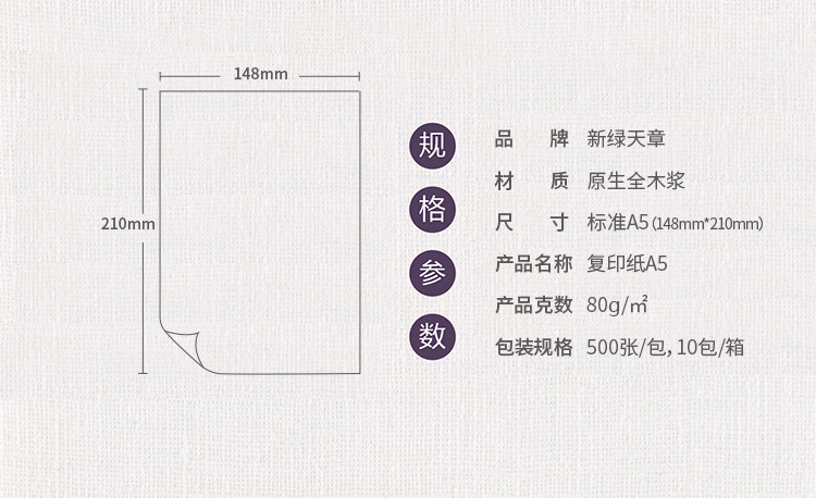商品名称:天章 新绿天章 80g A5 复印纸 500张/包 10包/箱 (单位:箱)