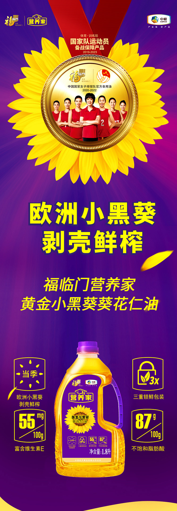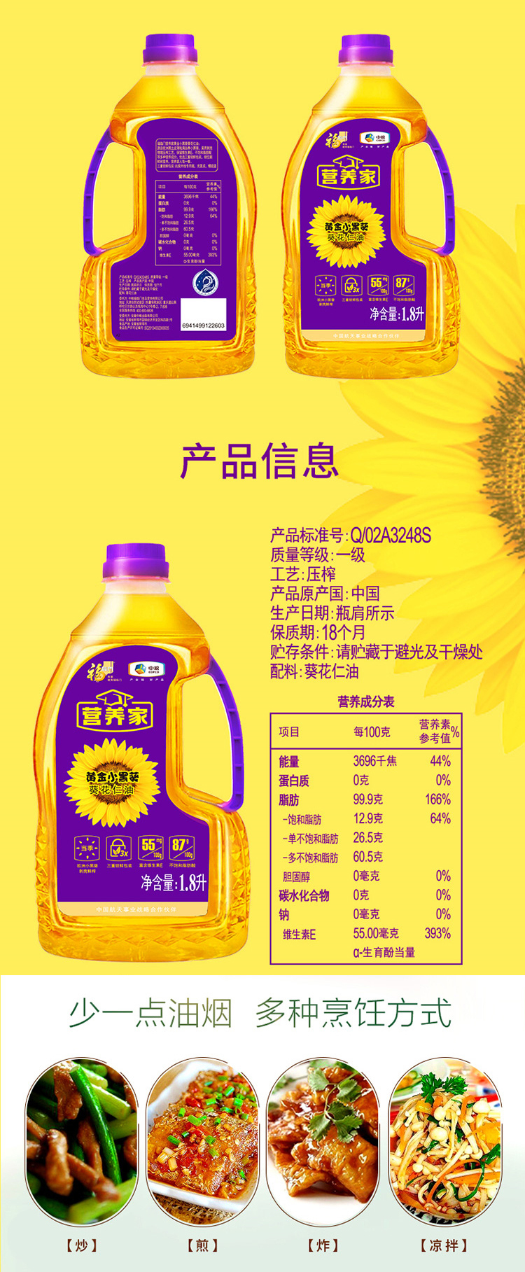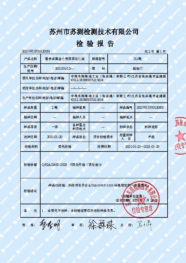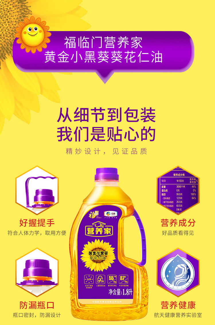 商品名称:福临门 小黑葵葵花仁油1.8L 单位:瓶