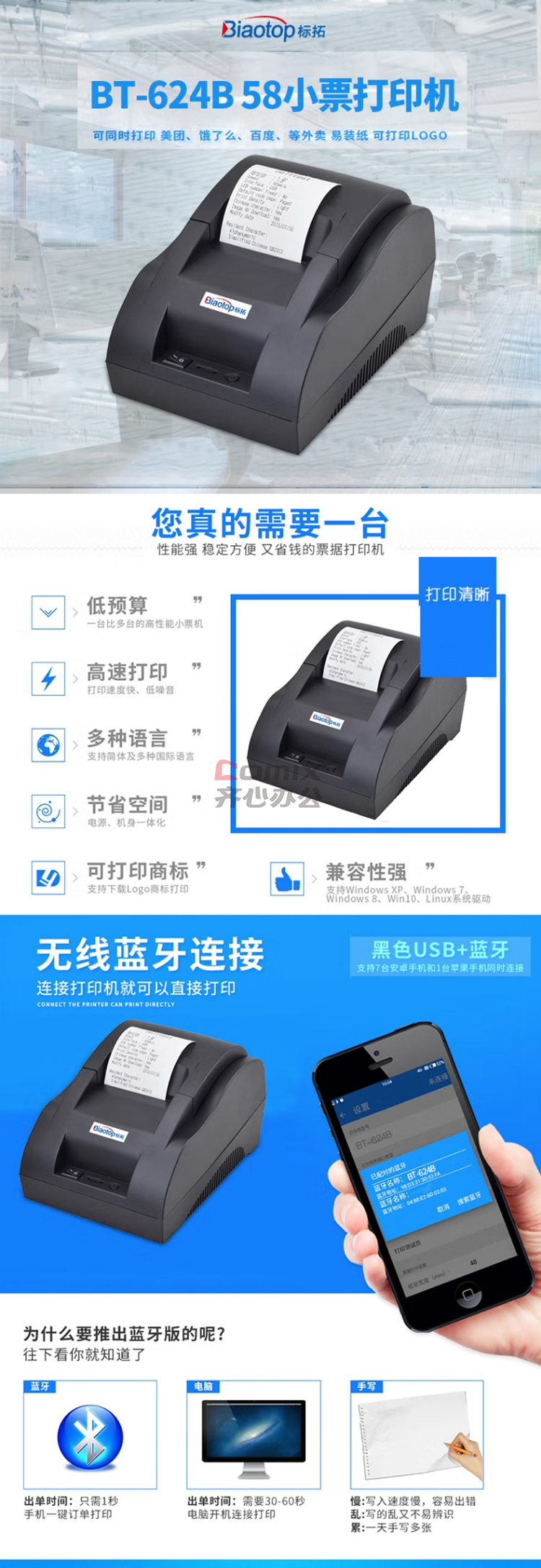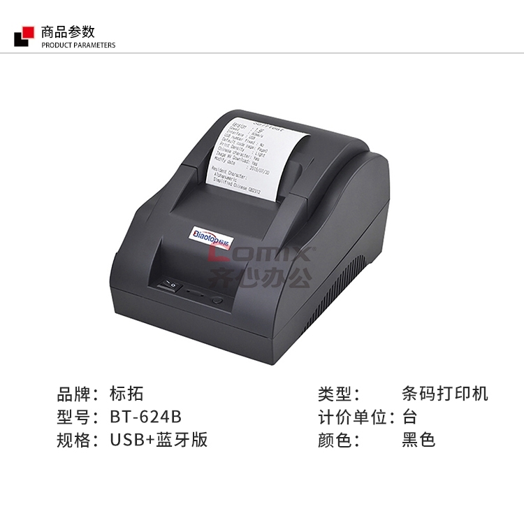 商品名称:标拓 BT-624B USB+蓝牙版 条码打印机 黑色 单位:台