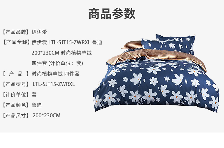 商品名称:伊伊爱LTL-SJT15-ZWRXL时尚植物羊绒四件套鲁迪200*230(套)