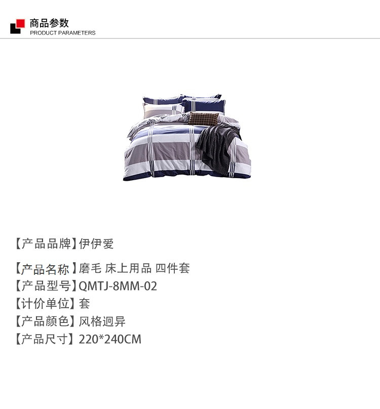 伊伊爱QMTJ-8MM-02磨毛四件套床上用品套件200*230cm(单位:套)