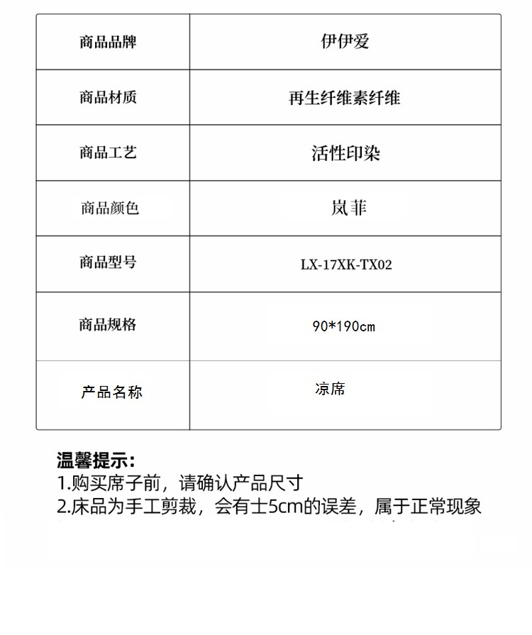 商品名称:伊伊爱LX-17XK-TX02日式养生藤席夏季单人席双人席90*190cm(单位:套)