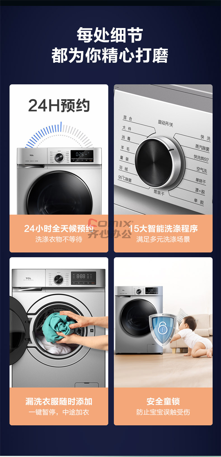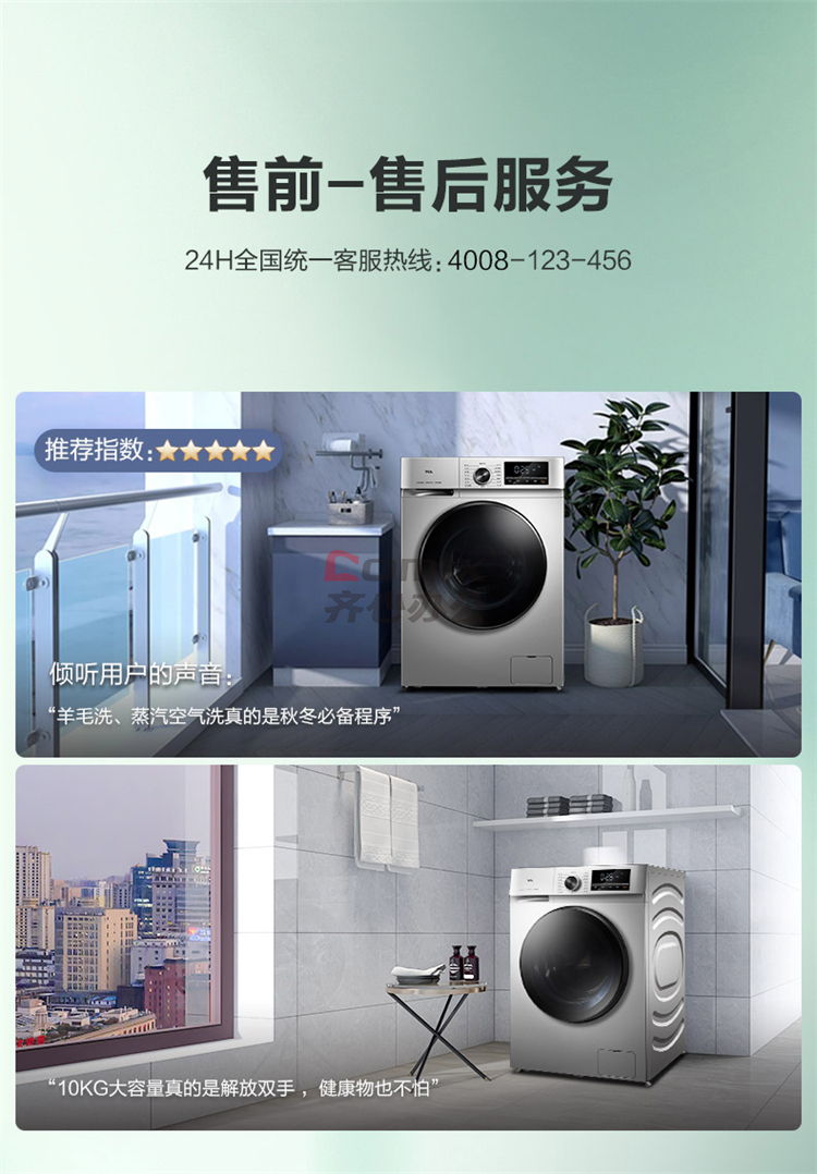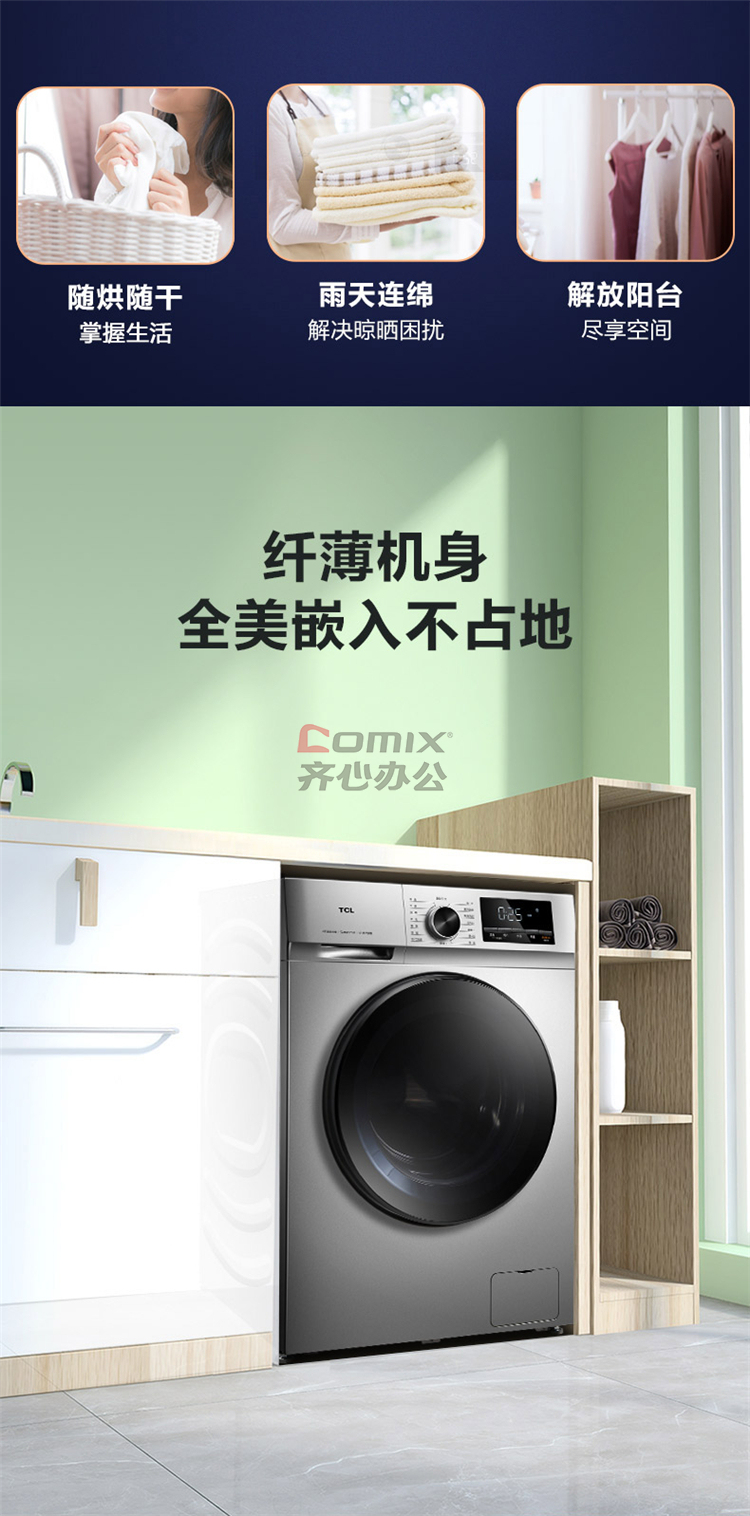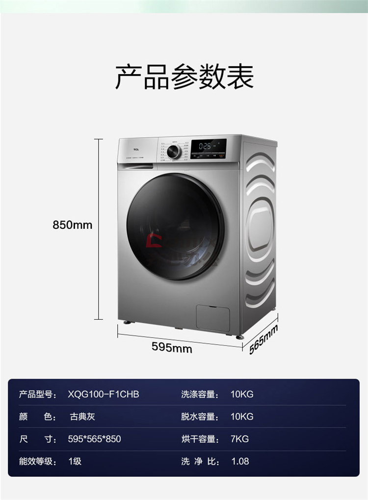 商品名称:TCL XQG100-F1CHB 10公斤 洗烘一体 全自动滚筒洗衣机(单位:台)