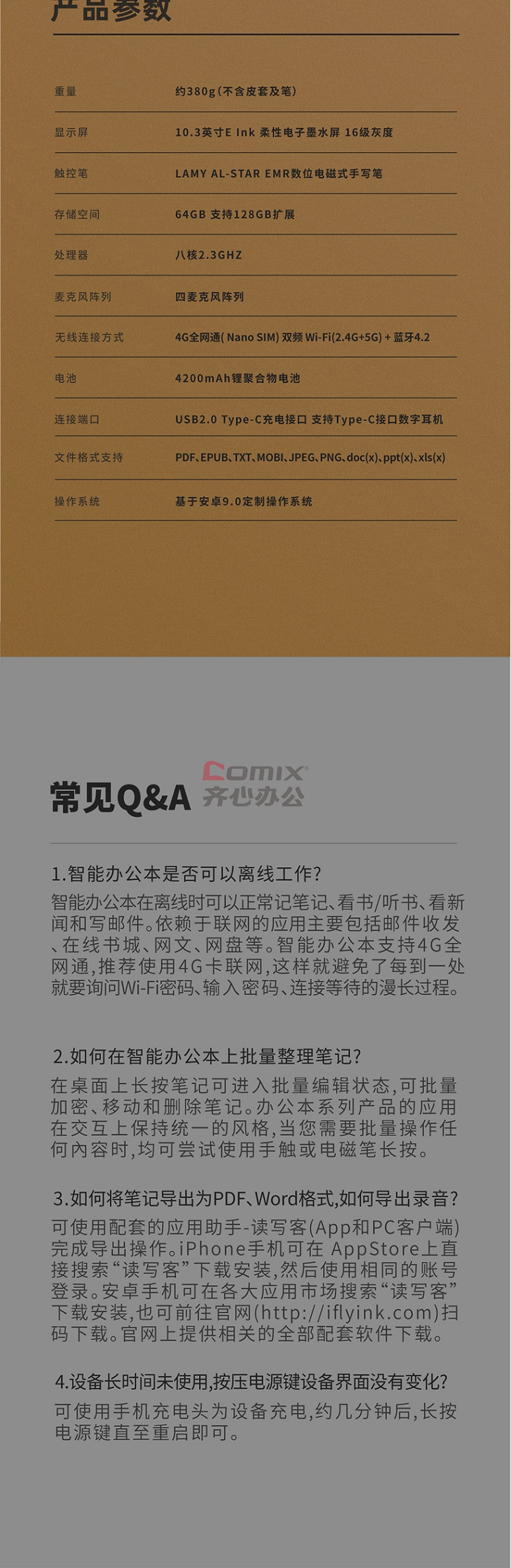 商品名称:科大讯飞智能办公本X2 10.3英寸电子书阅读器 LAMY联名款礼盒 棕色 (单位:台)