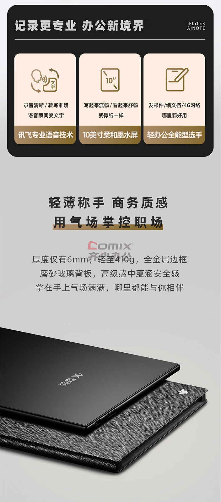 商品名称:科大讯飞智能办公本T2 10英寸电子书阅读器 黑色 (单位:台)