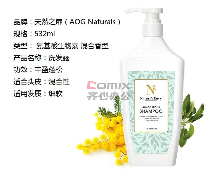 商品名称:天然之扉(AOG Naturals) 532ml 氨基酸生物素 混合香型 洗发露 (计价单位:瓶)