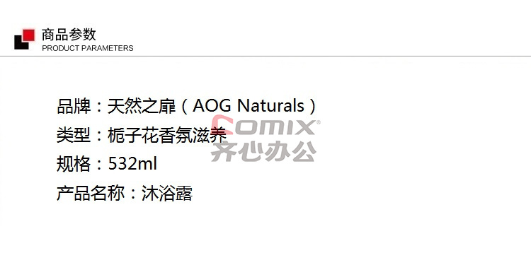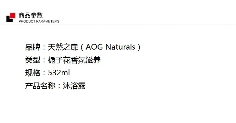 商品名称:天然之扉(AOG Naturals) 栀子花香氛滋养 532ml 沐浴露 (计价单位:瓶)