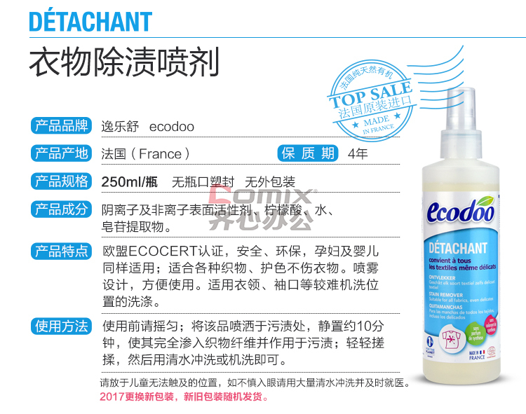 商品名称:逸乐舒 250ml 衣领袖口 除渍喷剂(单位:瓶)