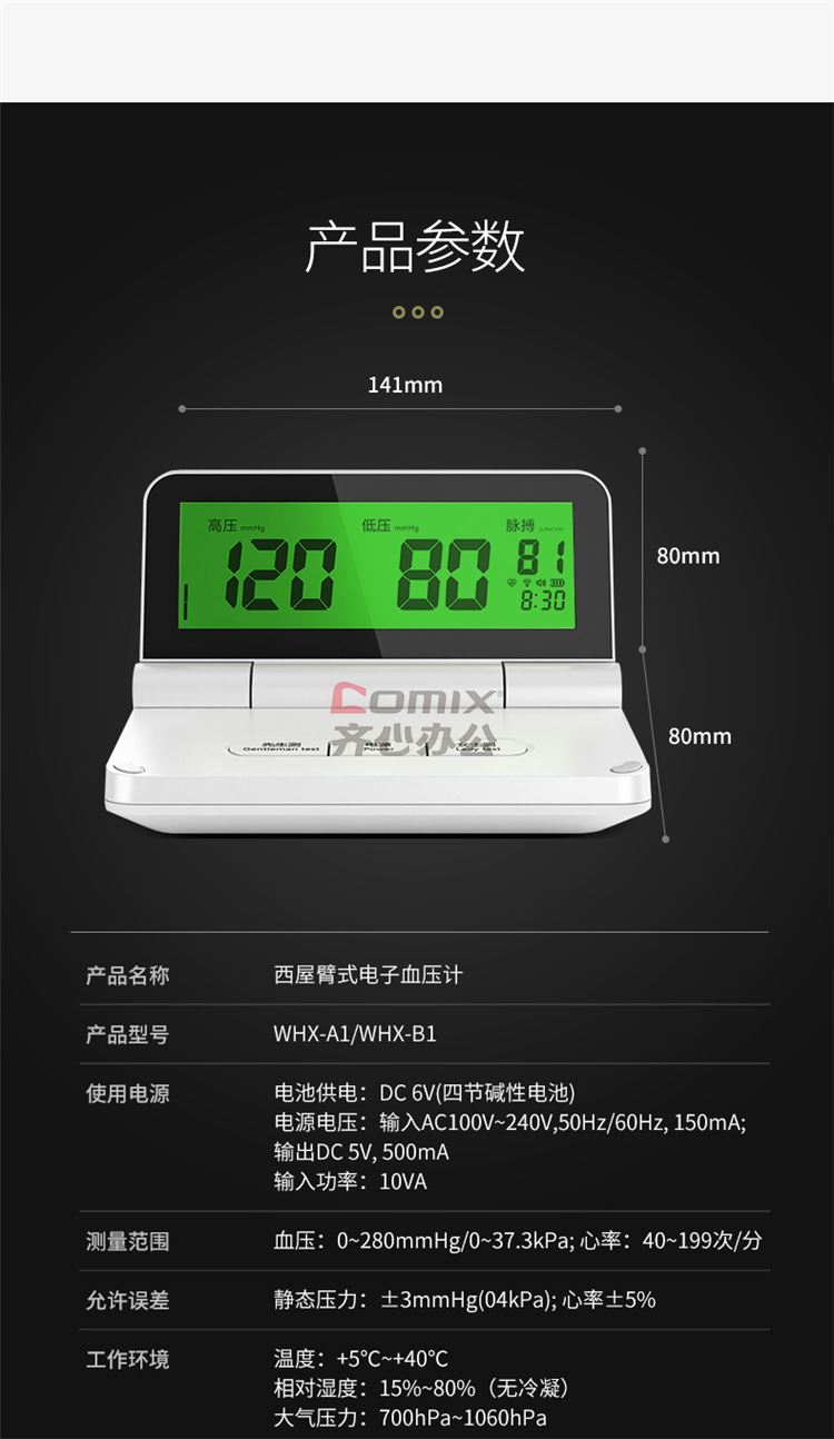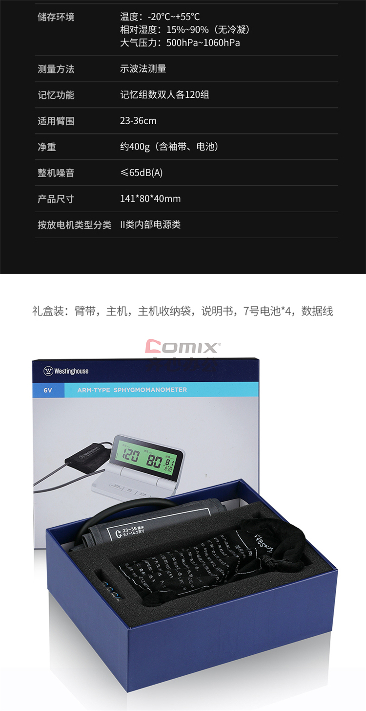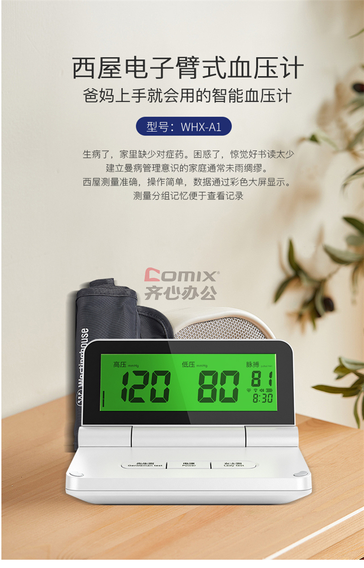 商品名称:西屋 WHX-A1 医用便携上壁式 电子血压计 白色(单位:台)