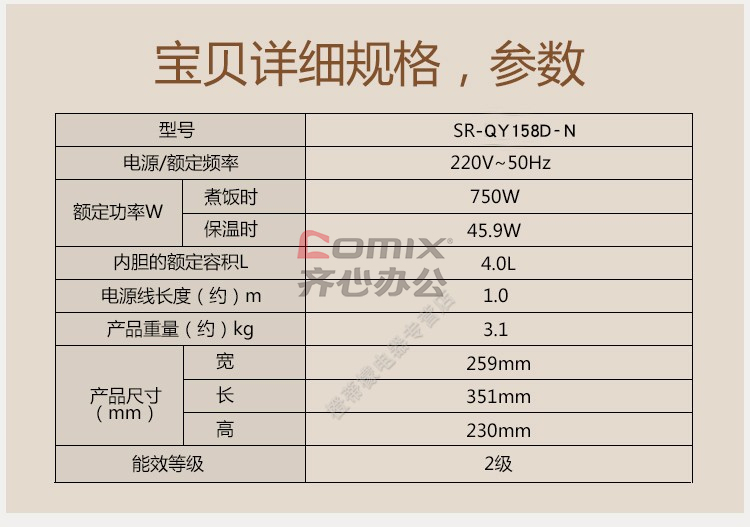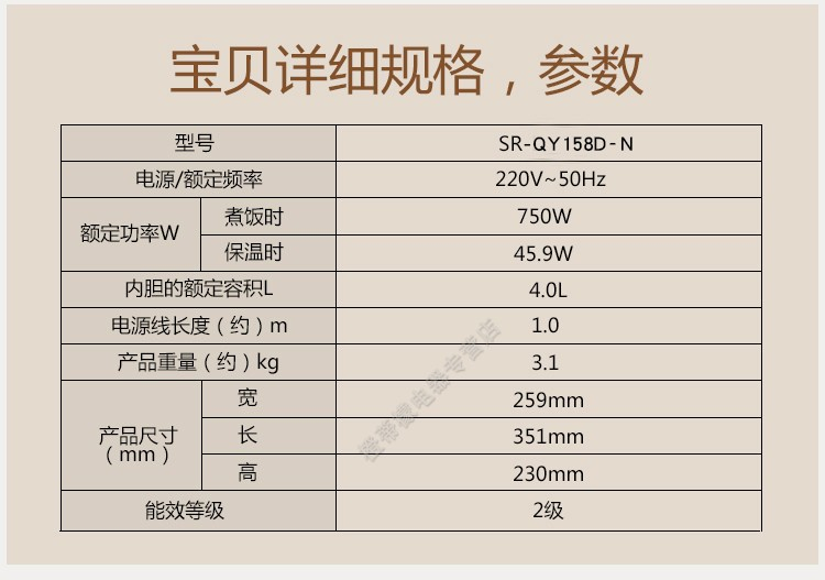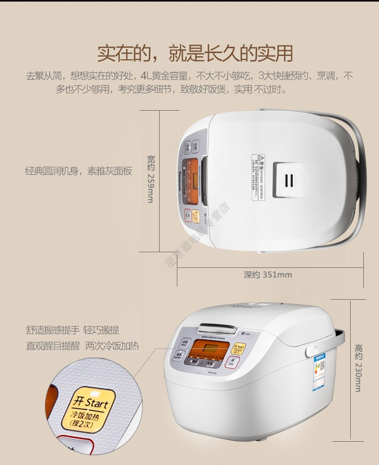 商品名称:松下 SR-QY158D-N 容量4L 电饭煲 白色(单位:个)