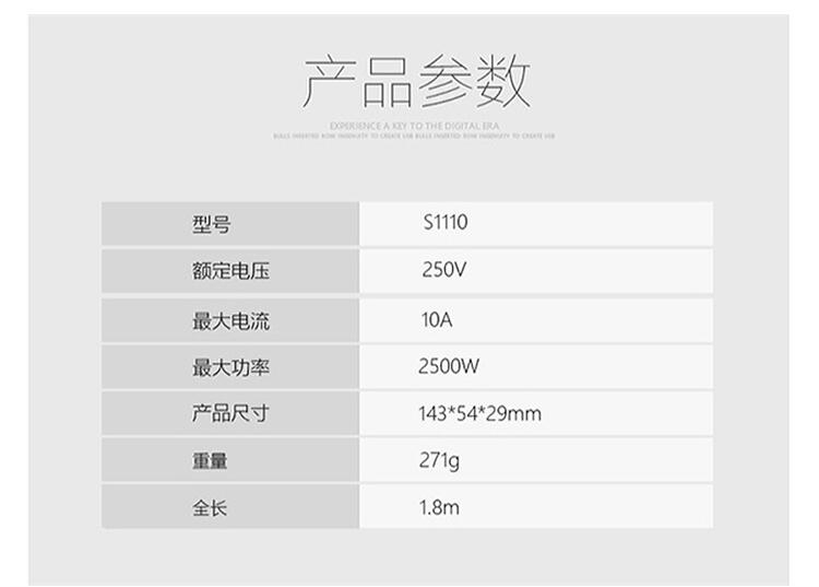 公牛 GN-S1110 143*54*29mm全长1.8米 2位总控插线板 (单位:个)