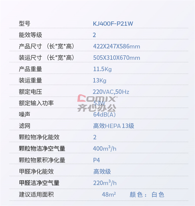 | 商品型号 | KJ400F-P21W 适用48㎡ |