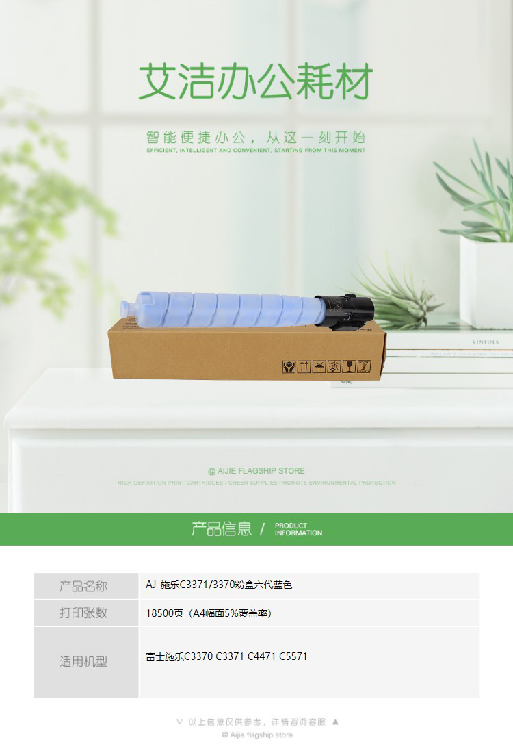 - 商品名称:艾洁(AJ) C3371/3370六代 打印量18500页 适用富士施乐C3370 C3371 C4471 C5571 CT202642 粉盒 (计价单位:只) 蓝色