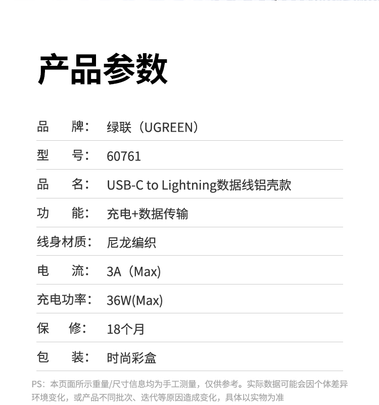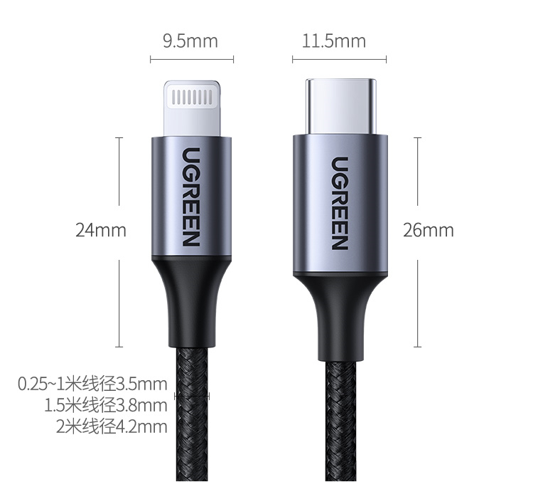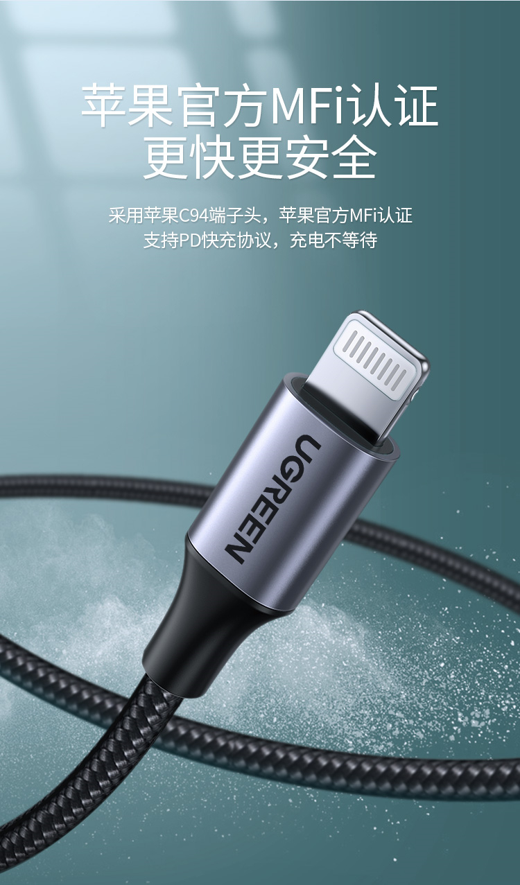 - 商品名称:绿联 MFi认证 苹果PD快充数据线通用iPhone13/12/SE/11/Xs/XR手机USB-C/Type-C to Lightning充电器闪充线2米 (单位:根)