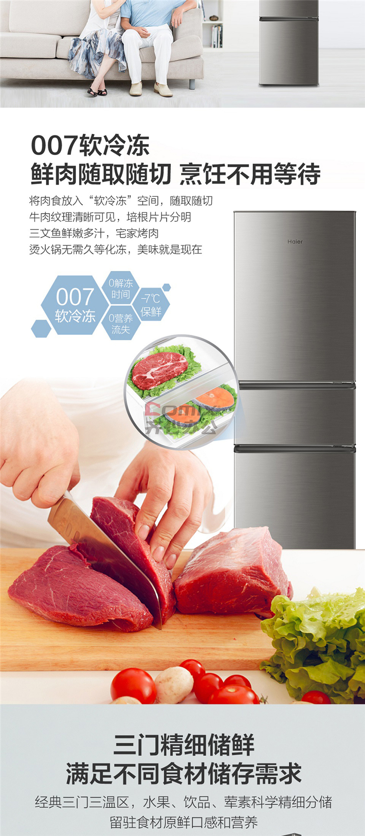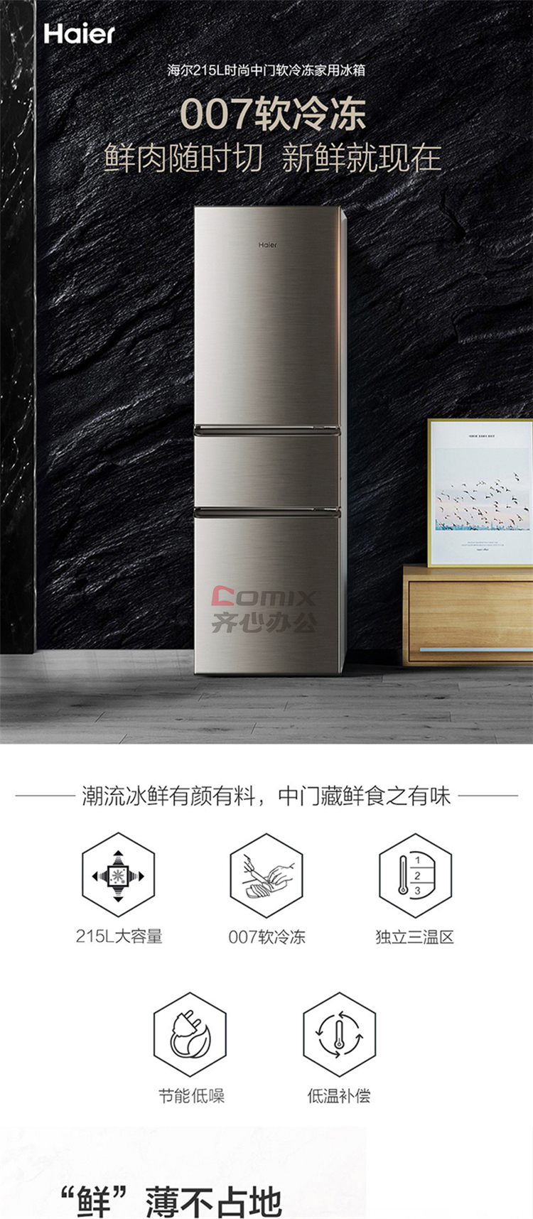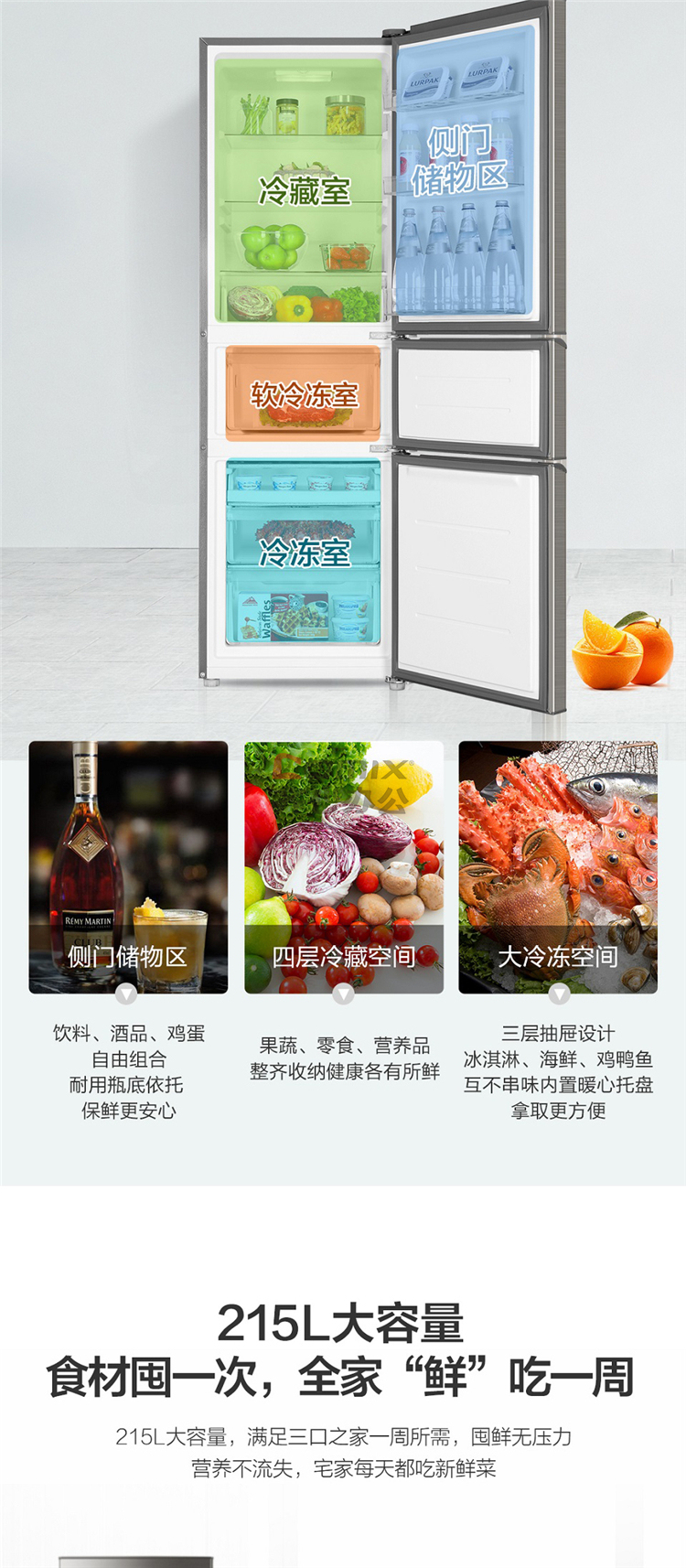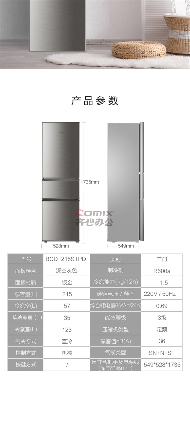 商品名称:海尔 BCD-215STPD 直冷三门215升钣金面板冰箱 深空灰 (单位:台)