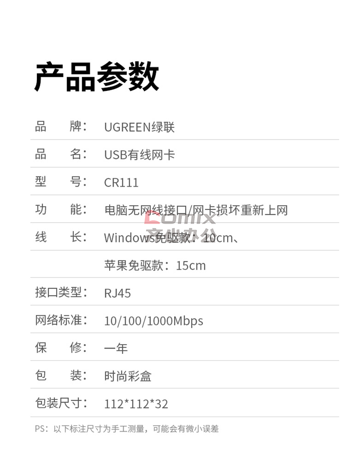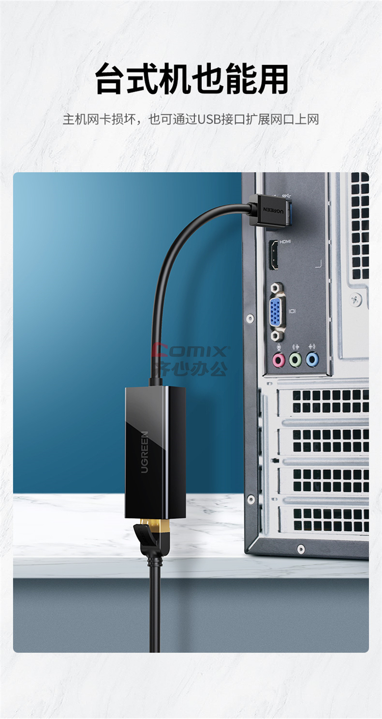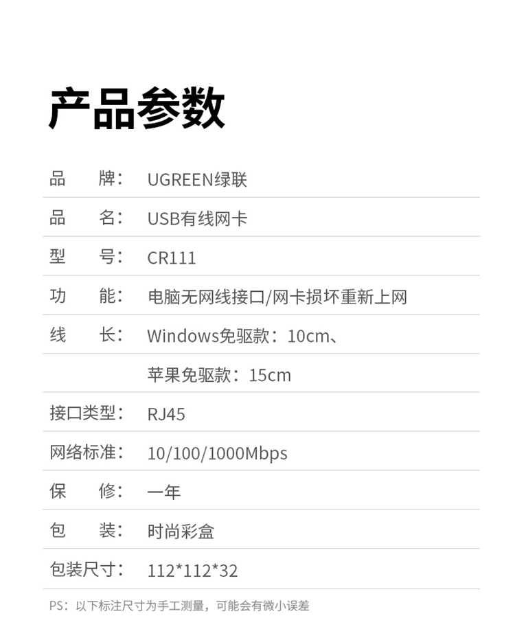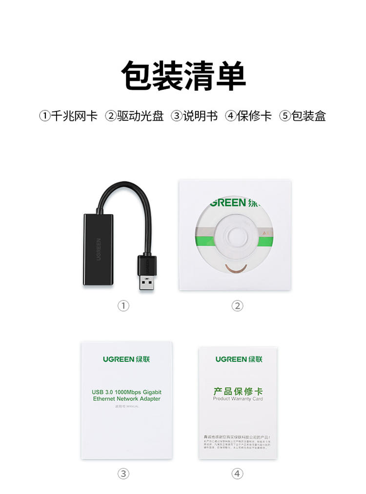 商品名称:绿联(UGREEN) 20256 千兆有线网卡转RJ45网线接口转换器 (单位:个)