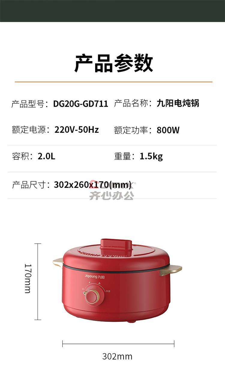 商品名称:九阳 DG20G-GD711 2L 多功能锅电炖锅 红色 (单位:台)