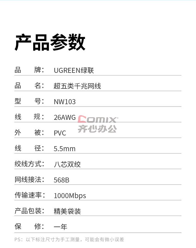 商品名称:绿联 NW103 11231 超五类网线2米黄色(单位:根)