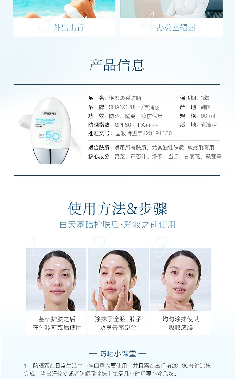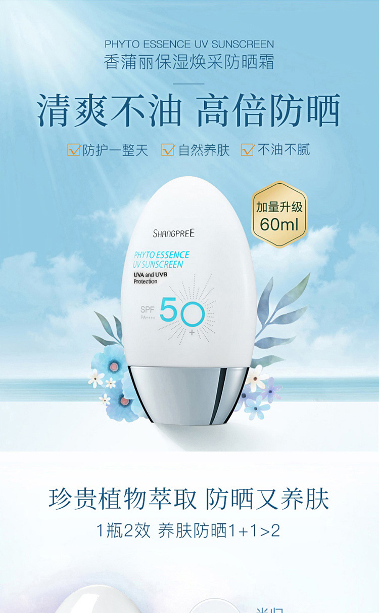 商品名称:香蒲丽 60ml 保湿焕采防晒霜 白色(单位:瓶)